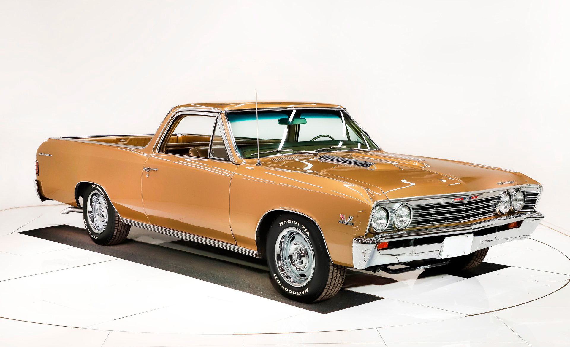 1967 Chevrolet El Camino 396Details Engine Size: 396-325 HP Transmission Type: Turbo 400 Auto Miles: 87573 Body Style: Pickup Truck Body Colour: Grenada Gold Stock #: 710 VIN: 136807B127055